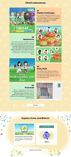 I analyzed the existing Pikmin Bloom website to identify clarity, structure, and usability issues across key pages. By analyzing how content is organized and presented, it reveals key usability issues that prevent users from understanding the product and its features.